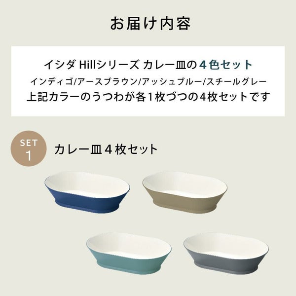 日本製 割れにくい カレー皿 4色セット イシダ 4140 ヒルシリーズ テーブルウェア(インディゴ/アースブラウン/アッシュブルー/スチールグレー)