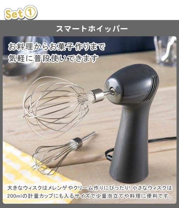 お料理からお菓子作りまで大活躍!手入れが楽でコンパクトなので、気軽に普段使いできるスマートホイッパー(ブラック)です。