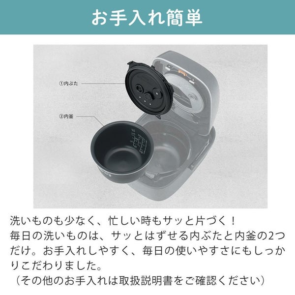 毎日の洗いものは、サッとはずせる内ぶたと内釜の2つだけ。