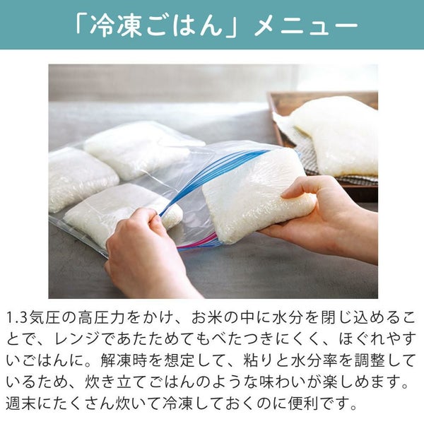 1.3気圧の高圧力をかけ、お米の中に水分を閉じ込めることで、レンジであたためてもべたつきにくく、ほぐれやすいごはんに。