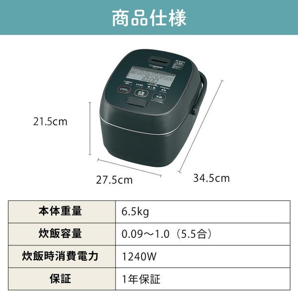 | 炊飯容量(白米L) | 0.09~1.0(5.5合) |