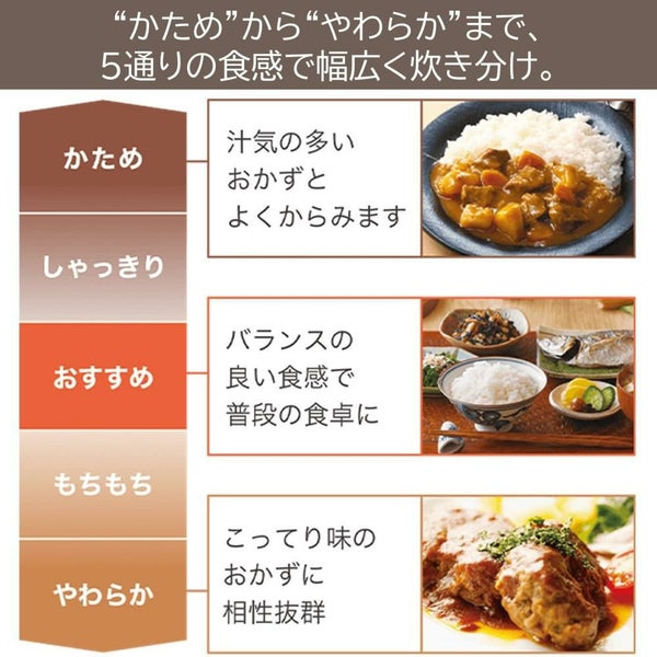 食感 や 銘柄 炊き分け たり、早炊き 少量 おかゆ 玄米 など 多彩な 炊飯コース を搭載。