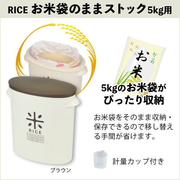 | 2)パール金属 RICE お米袋のままストック5kg用(ブラウン) HB-2168 |