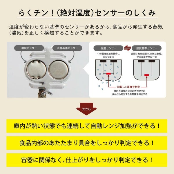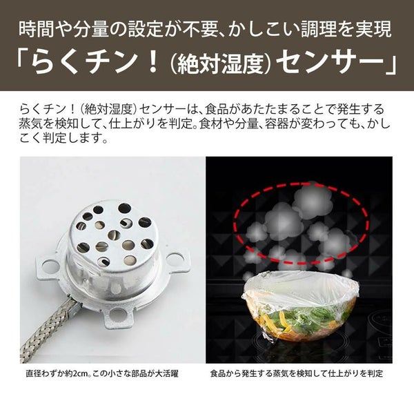 らくチン!(絶対湿度)センサー搭載。蒸気を検知して、仕上がりをかしこく判定します。