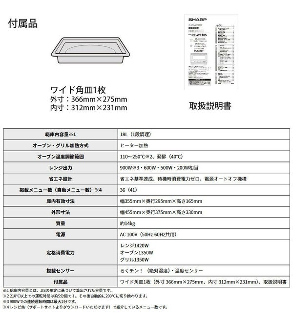 ▼ シャープ オーブンレンジ RE-WF185-W ホワイト