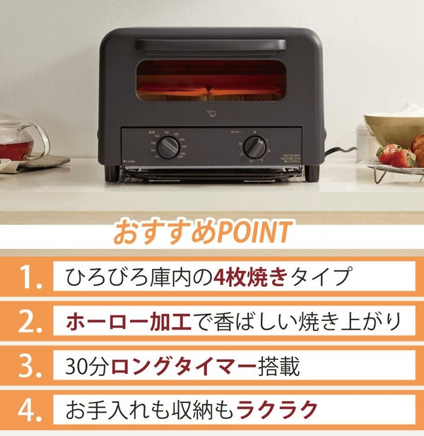 ●同時にトースト4枚焼ける「ひろびろ庫内」