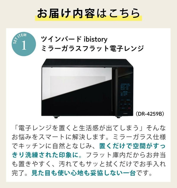 ツインバード ibistory ミラーガラスフラット電子レンジ DR-4259B の特徴