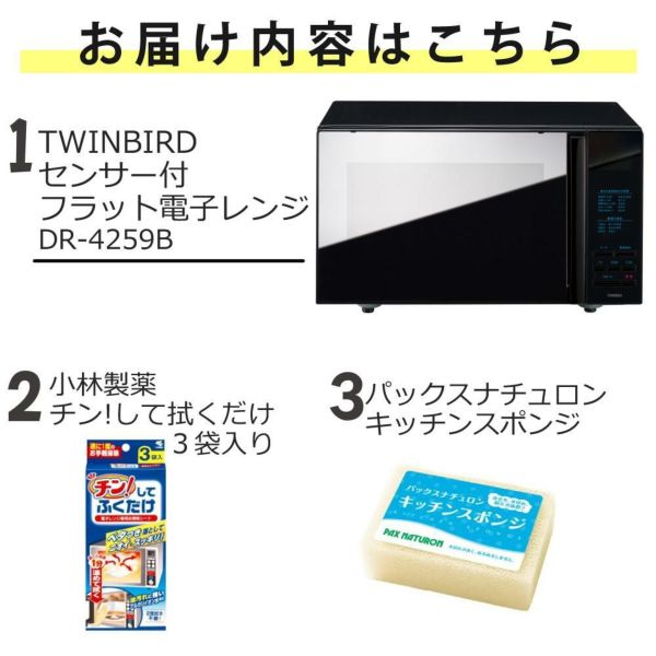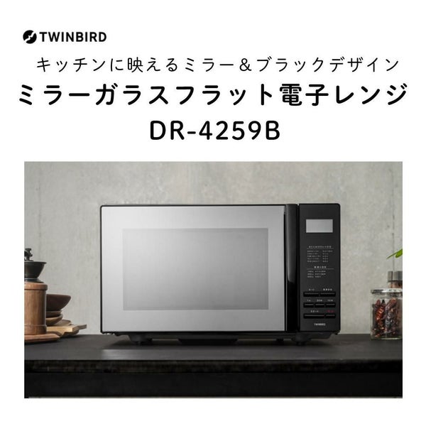 1)ツインバード ミラーガラスフラット電子レンジ DR-4259B