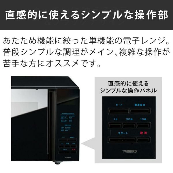 シンプルなボタン操作と表示が見やすいバックライト付の液晶で使いやすいフラット電子レンジです。