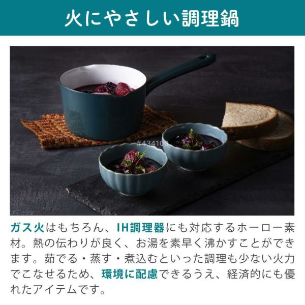 ガス火はもちろん、IH調理器にも対応するホーロー素材。