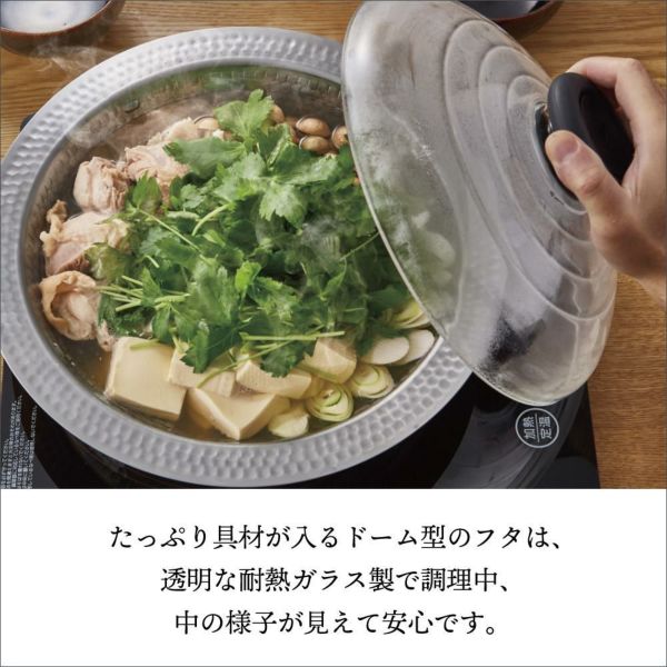 耐熱ガラス製のフタなので、調理中の中の様子が見えて食べごろが分かります。