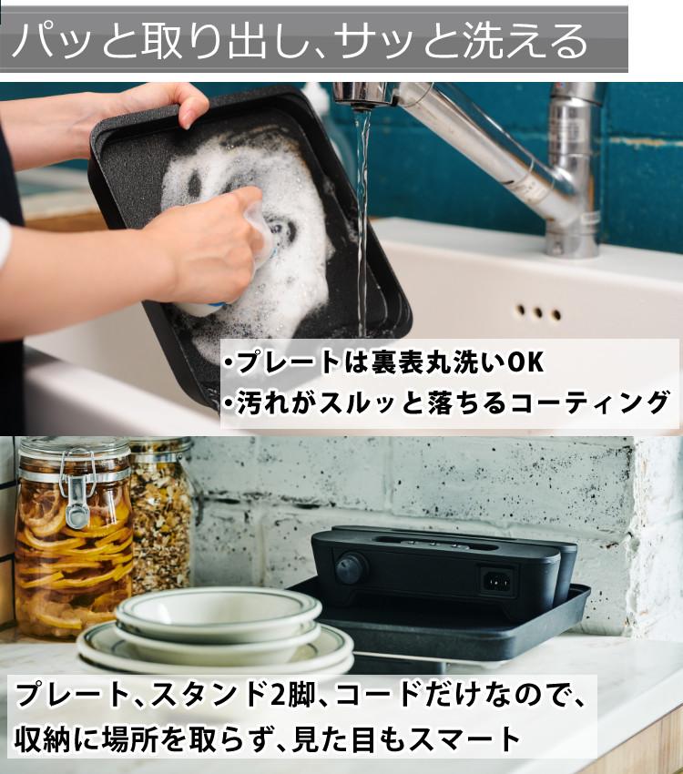 ホットプレートにありがちな油はねのお片付けも、グリルマットを洗っていただくだけOK。
