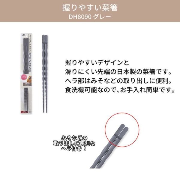 ・貝印 握りやすい菜箸 27cm ヘラ付き グレー DH8090 ×1