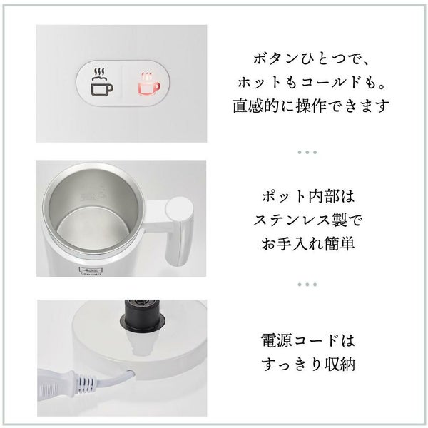 ホット&コールドの、きめ細かいミルクフォームが簡単に作れるミルクフォーマーです。