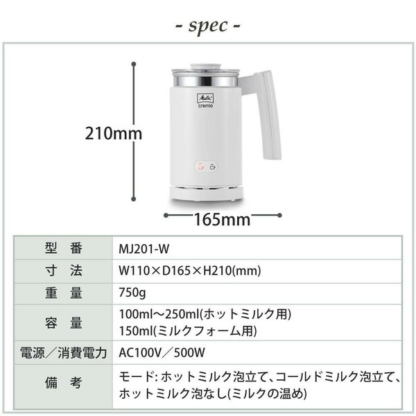 メリタ ミルクフォーマー クレミオ2 MJ201-W