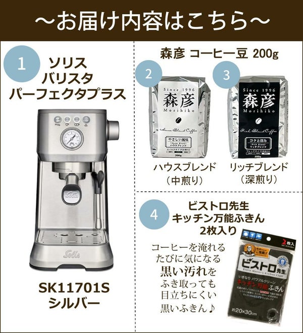 検索ワード:Solis バリスタ エスプレッソマシン SK11701S SK11701 パーフェクタプラス コーヒー PIDスチーム ラテアート カフェラテ 豆乳 カプチーノ クレマ エスプレッソ抽出 予熱時間 バリスタアクセサリー 16気圧 PIDコントローラー 森彦 コーヒー豆 豆 セット