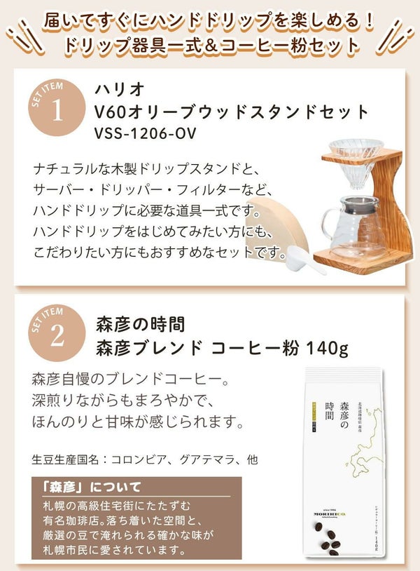| 1)ハリオ V60オリーブウッドスタンドセット VSS-1206-OV |