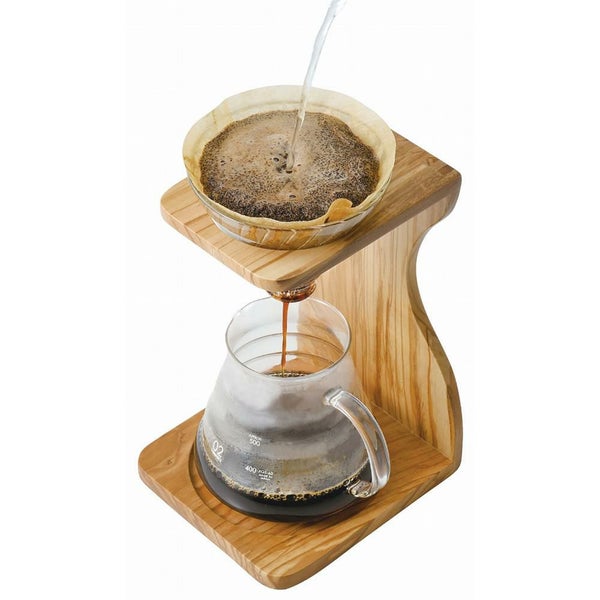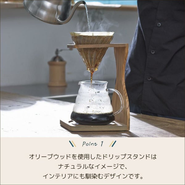 オリーブウッドを使用したドリップスタンドはナチュラルなイメージで、インテリアにも馴染むデザインです。