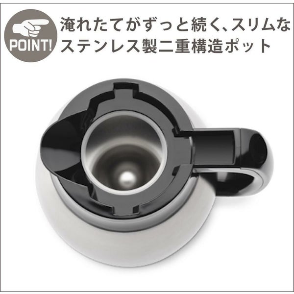 温かいまま置いておきたいときはもちろん、アイスコーヒーを作ってお楽しみいただく際にも、保冷可能なステンレスのポットが便利です。