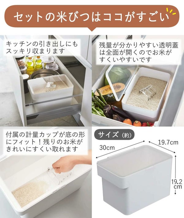 2)山崎実業 tower タワー 密閉 シンク下米びつ タワー 5kg 計量カップ付 1個