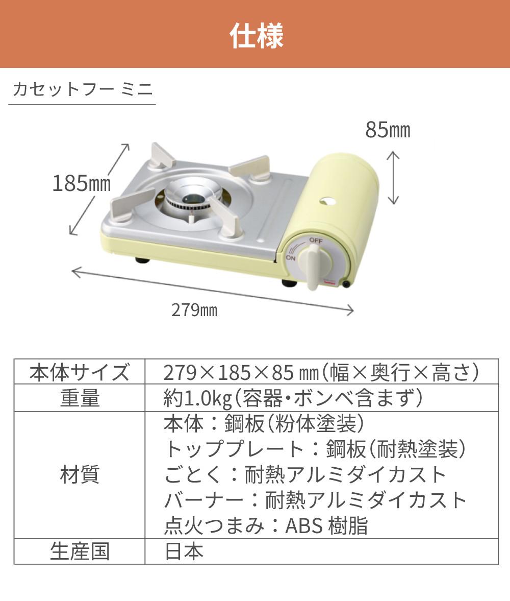 | 使用ガス | イワタニカセットガスジュニア(別売り) イワタニカセットガス(別売り) ※イワタニカセットガスパワーゴールドはご利用いただけません |