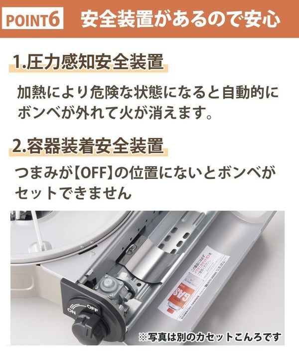 加熱により危険な状態になると自動的にボンベが外れて火が消えます。