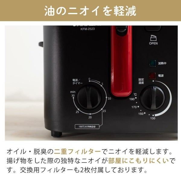 揚げ物をした際の独特なニオイが部屋にこもりにくい。交換用フィルターも2枚付属。