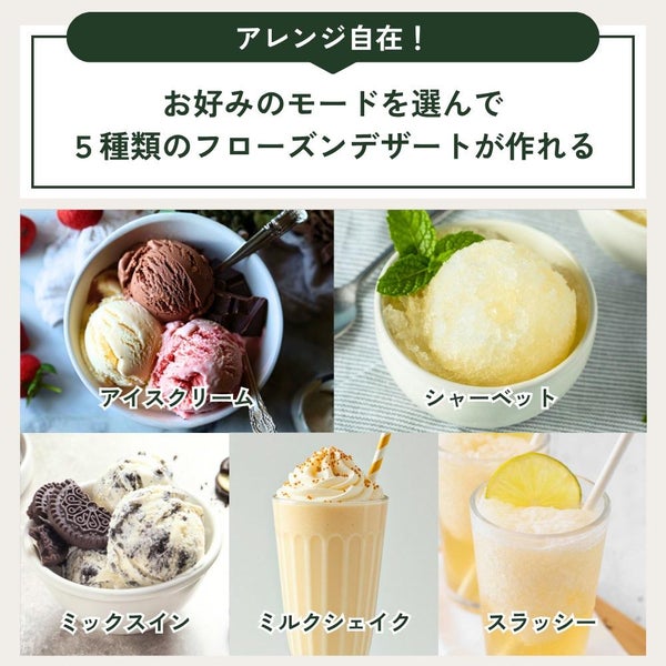 【付属品】本体ハンドル、本体ユニット、デザートカップ(最大容量240ml)×3、オリジナルレシピ