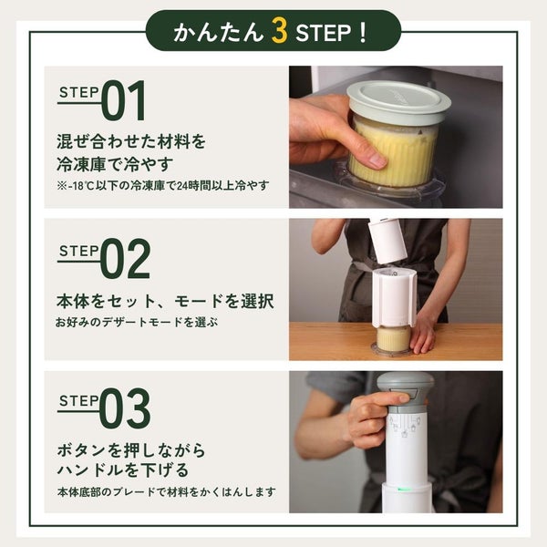 | セット内容 | 本体ハンドル、本体ユニット、デザートカップ(最大容量240ml)×3、オリジナルレシピ |