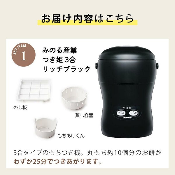 1)みのる産業 3合もちつき機 つき姫 リッチブラック HS-037B