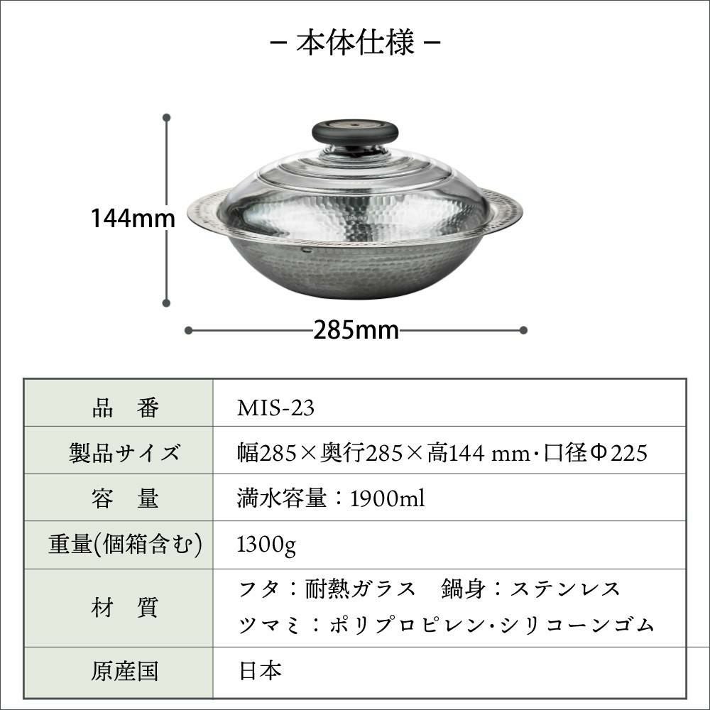 他の画像を見る HARIO 雪平鍋 1~2人向け すきやき もつ鍋 海鮮鍋 フォンデュ いろんな 鍋物 が楽しめます ハリオ MIS-23 フタがガラスのIH対応ステンレス鍋 雪平 23cm(ラッピング不可) 販売価格 ¥ 5,100 税込 カートに入れる お気に入りに登録する (0件)