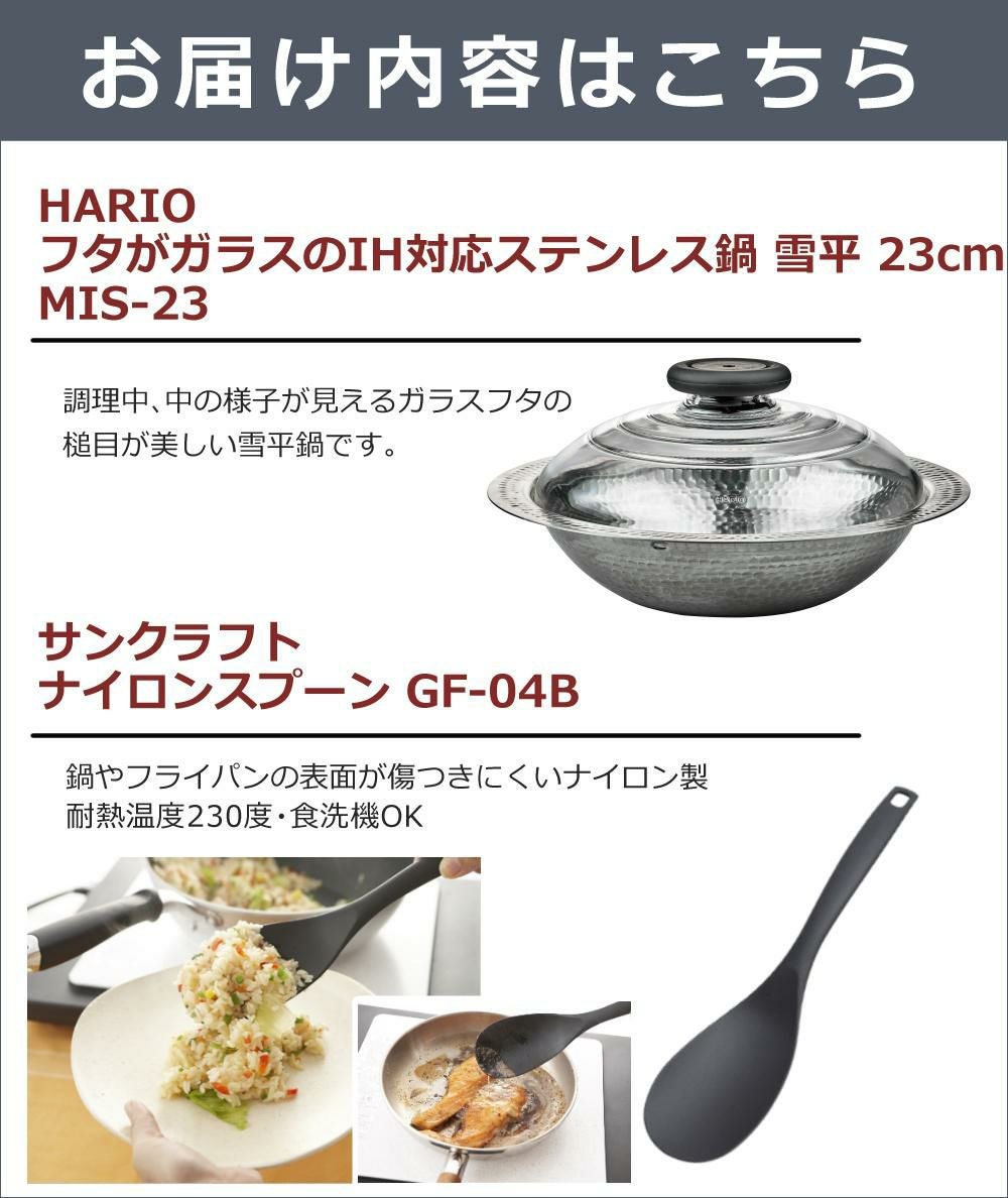 他の画像を見る HARIO 雪平鍋 1~2人向け すきやき もつ鍋 海鮮鍋 フォンデュ いろんな 鍋物 が楽しめます ハリオ MIS-23 フタがガラスのIH対応ステンレス鍋 雪平 23cm &ナイロンスプーン(ラッピング不可) 販売価格 ¥ 5,280 税込 カートに入れる お気に入りに登録する (0件)