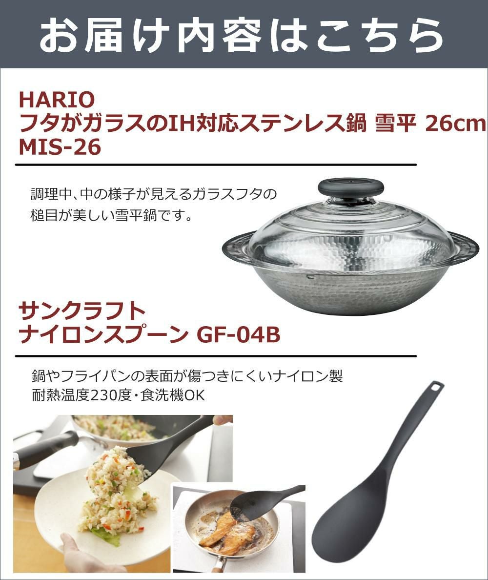他の画像を見る HARIO 雪平鍋 1~2人向け すきやき もつ鍋 海鮮鍋 フォンデュ いろんな 鍋物 が楽しめます ハリオ MIS-26 フタがガラスのIH対応ステンレス鍋 雪平 26cm &ナイロンスプーン(ラッピング不可) 販売価格 ¥ 6,280 税込 カートに入れる お気に入りに登録する (0件)