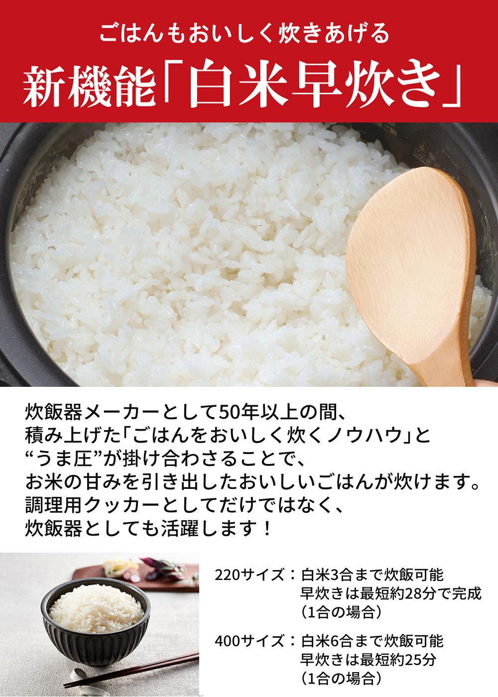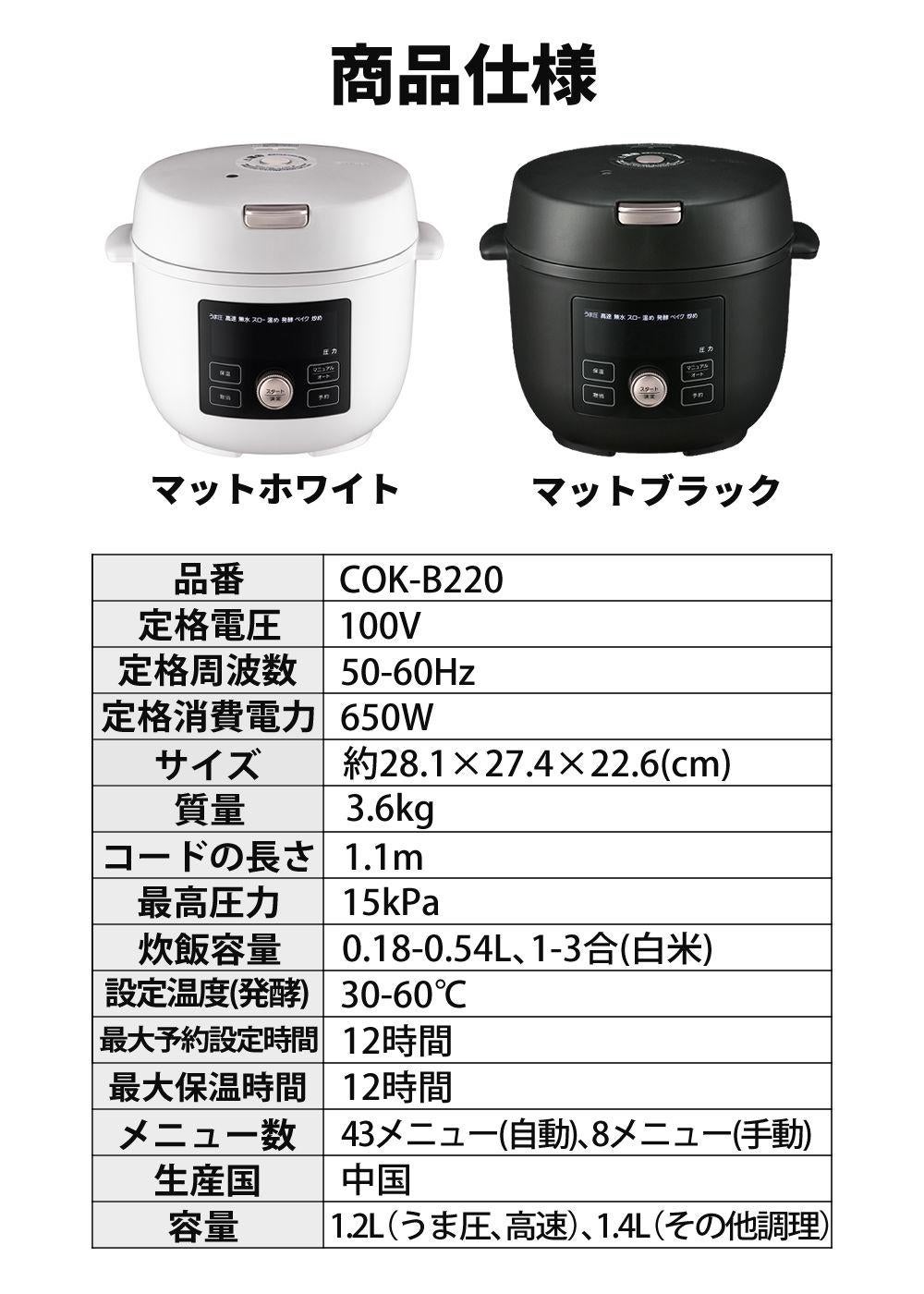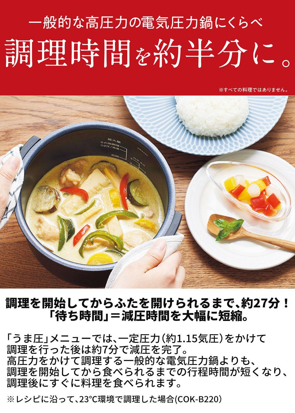 他の画像を見る 圧力鍋 電気鍋 圧力 低温調理 圧力調理 無水調理 炊飯 保温 圧力なべ 鍋 ナベ 簡単調理 調理 料理 調理家電 キッチン家電 シンプル家電 プレゼント ほったらかし タイガー 電気圧力鍋 クックポッド 2.2L COK-B220WM ホワイト電気調理鍋 時短 圧力調理 キッチン家電 無水(ラッピング不可) 販売価格 ¥ 25,000 税込 在庫切れ 詳細を見る お気に入りに登録する (0件)