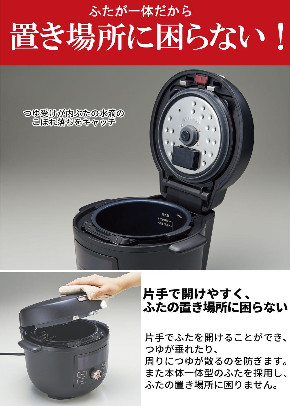 他の画像を見る 圧力鍋 電気鍋 圧力 低温調理 圧力調理 無水調理 炊飯 保温 圧力なべ 鍋 ナベ 簡単調理 調理 料理 調理家電 キッチン家電 シンプル家電 プレゼント ほったらかし タイガー 電気圧力鍋 クックポッド 2.2L COK-B220KM ブラック 電気調理鍋 時短 圧力調理 キッチン家電 無水(ラッピング不可) 販売価格 ¥ 25,000 税込 在庫切れ 詳細を見る お気に入りに登録する (0件)
