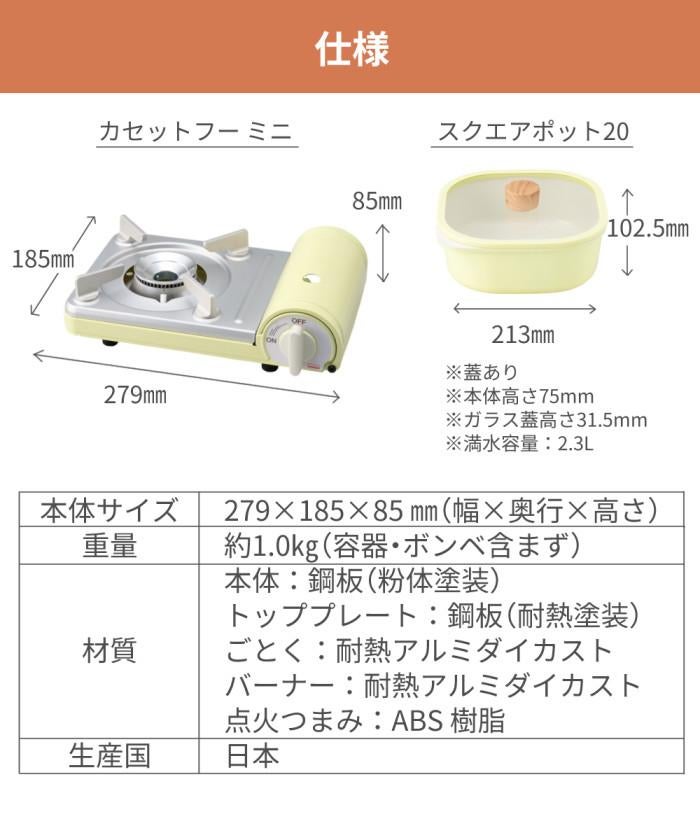 他の画像を見る 岩谷産業 カセットこんろ 一人暮らし 一人鍋 キャンプ アウトドア ベランピング におすすめ コンパクトなサイズ で収納 保管 災害対策 にも備えておくと安心です コンロ&小型鍋セット イワタニ カセットコンロ カセットフー ミニ スクエアポット ホワイト モカ イエロー CB-JRC-MN 3点セット 販売価格 ¥ 10,000 税込 在庫切れ カートに入れる お気に入りに登録する (0件)