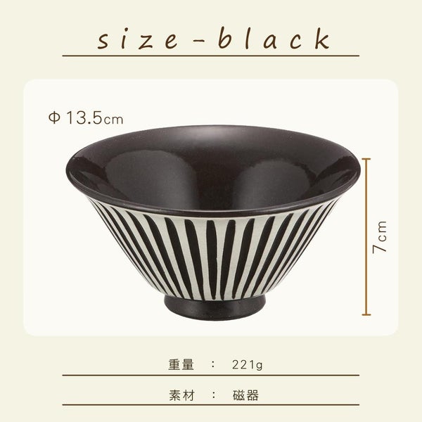 浜陶 波佐見焼 茶碗 黒陶刷毛しのぎ(大小) ●対になったデザイン 二つの茶碗がセットになっています。 大きさや形、色合いなどが対になっていて夫婦でお使いいただけます。 可愛いデザインなので、食卓に並べても、食器棚にしまってもおしゃれに映えます。 【食洗機】可 【サイズ】 (大)直径13.5×7cm (小)直径13×6cm