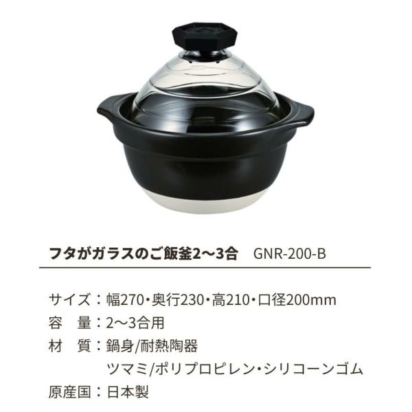 炊ける様子が見える、耐熱ガラス製フタのご飯釜。