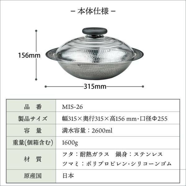 | 材質 | 鍋身:ステンレス