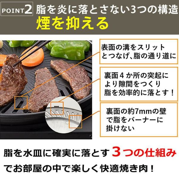 焼肉調理に合わせ設計されており、通常のカセットこんろに比べ発熱量は抑えられています。
