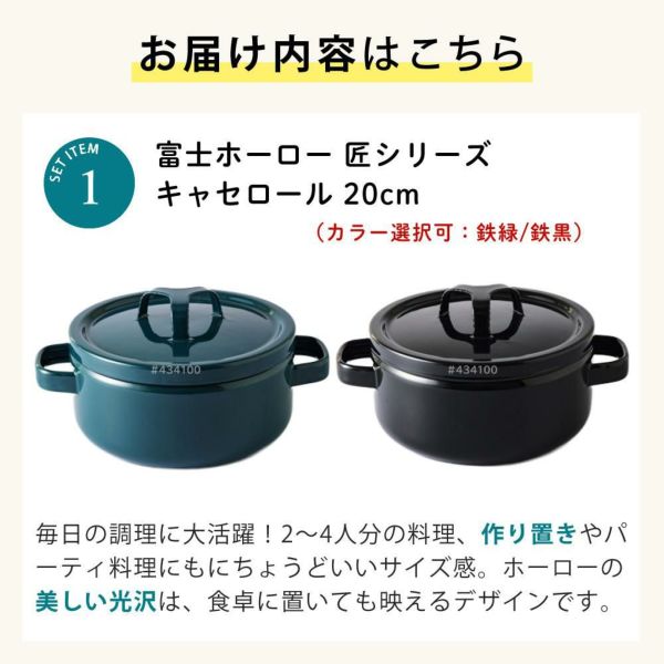| 1)富士ホーロー 匠シリーズ 20cm キャセロール TKM-20W (カラー選択可:鉄緑/鉄黒)