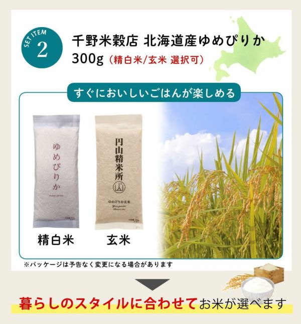 | 2)千野米穀店 北海道産ゆめぴりか 300g(選択可:精白米/玄米) |