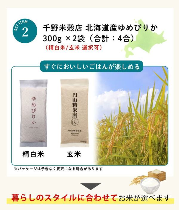 | 2)千野米穀店 北海道産ゆめぴりか 300g×2個(選択可:精白米/玄米) |