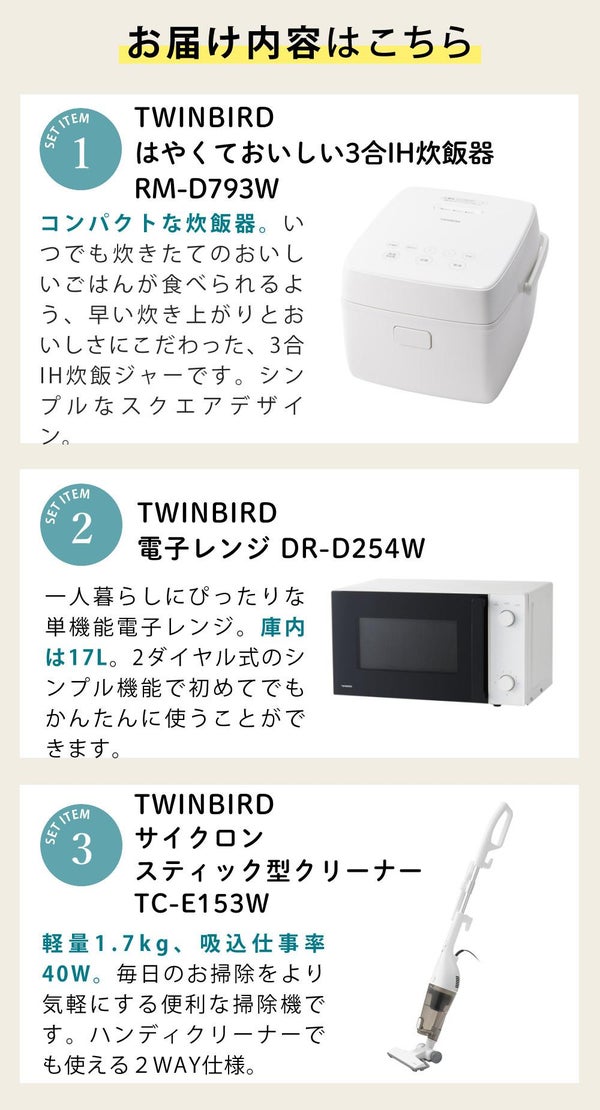 検索ワード:ツインバード TWINBRAD 炊飯器 電子レンジ 電子レンチ クリーナー ハンディクリーナー