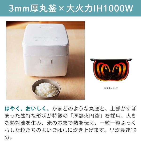 1)ツインバード IH炊飯器 ホワイト 3合 RM-D793仕様
