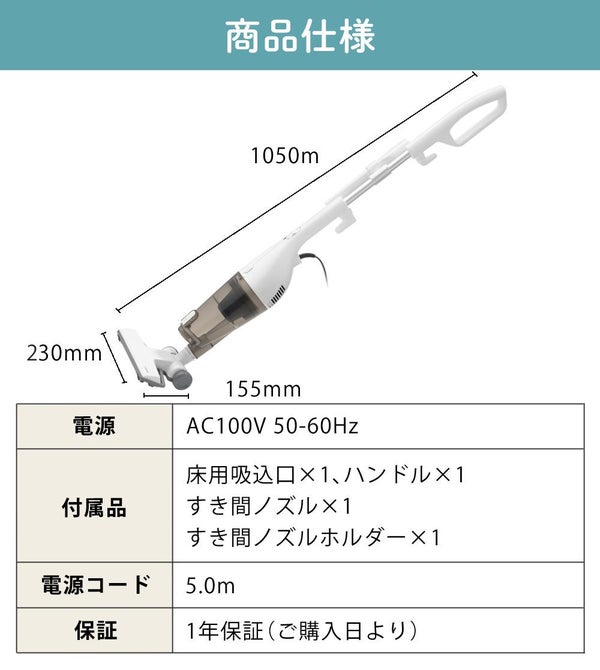 【付属品】床用吸込口、ハンドル、すき間ノズル、すき間ノズルホルダー