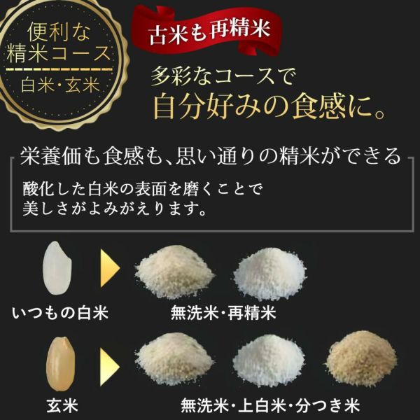 ・「再精米」のメニュー選択で、古くなった白米の香り・味をお米本来の状態に甦らせます。
