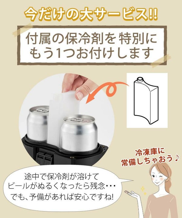 ボトルの間の保冷剤により、冷蔵庫で冷やしたビールの冷たさが長持ちします!