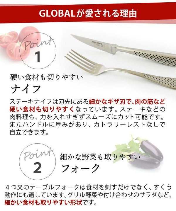 GLOBAL ステーキナイフ&フォーク 2組セット GTJ-02/B