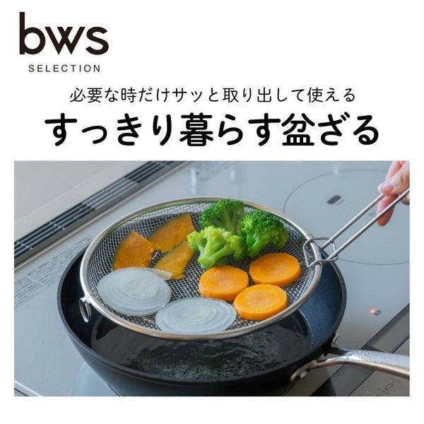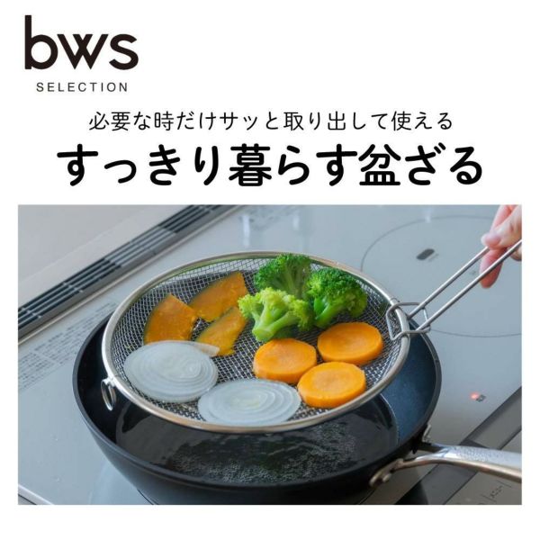 必要な時だけサッと取り出して使える脚付きの盆ざる。食器の水切りから麺料理、揚げ物、お鍋の具材、蒸し料理まで…幅広くお使いいただけます。